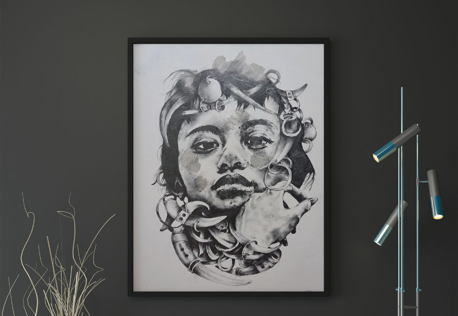 My preferred medium of drawing is pencil and pastel, but I take great pleasure in mixing media and using mediums such as wax and paint to enhance features and add vibrancy and life to the works. After a decade of drawing with pencil and pastel, I have grown to love drawing with pen. This highly underrated medium is considered the most difficult among artists. You can not afford to make mistakes with pen, because once it's on the paper, it's almost impossible to remove it. That's why I work carefully and accurately. I am not trying to reproduce reality, but to create a reinterpretation of reality through an African lens - that's why I want to work quite loosely.